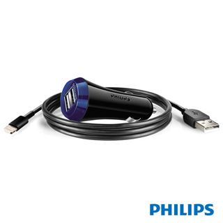 PHILIPS 雙USB 2.1A快速車用充電組DLP2257V(含iPhone5傳輸線)
