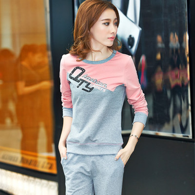 天貓購物商城運動套裝女春秋款2016女士圓領運動服長袖大碼韓版休閑衛衣運動裝 - 37017610151