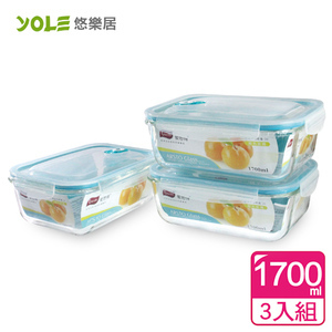udn買東西購物網【YOLE悠樂居】氣壓真空耐熱玻璃四扣保鮮盒#長形1700ml(3入組) 生日慶
