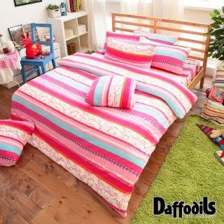 【Daffodils 。戀飄毓-粉橘】精梳純棉薄被套床包組(雙人加大孕韟?