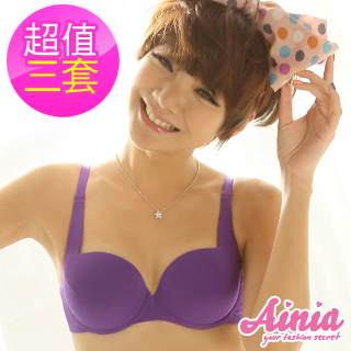 【AINIA】摩登日系-J型側壓集中A-C內衣褲三套組《粉+黑+紫》(a2031)