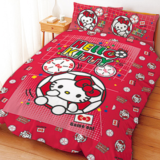 【享夢城堡】HELLO KITTY 瘋足球系列(雙人孕韟“犮]薄被套組)
