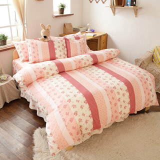 【100??棉】加大臺灣製六件式床罩組(淡雅玫瑰)
