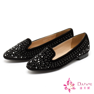 【達芙妮DAPHNE】達芙妮DAPHNE 璀璨星光水鑽寶石樂福鞋(魔幻黑)