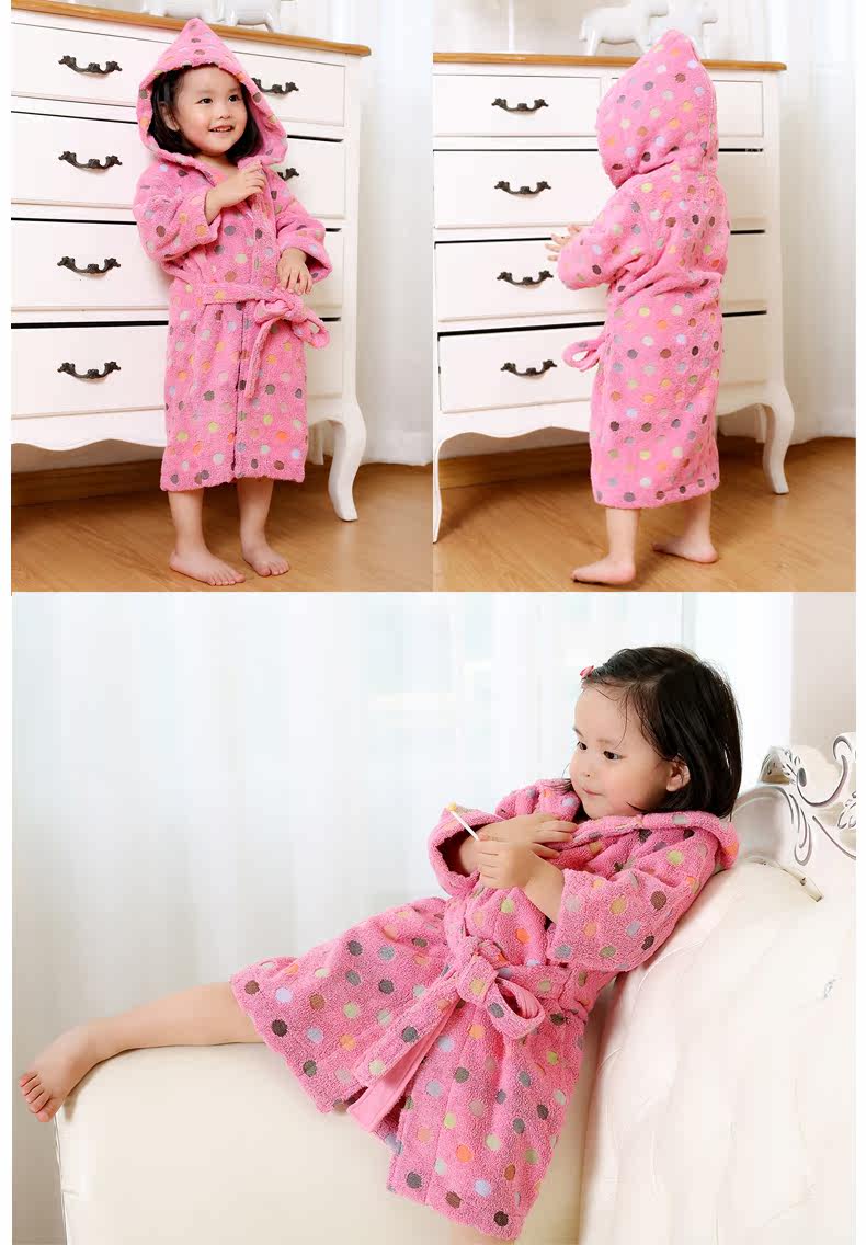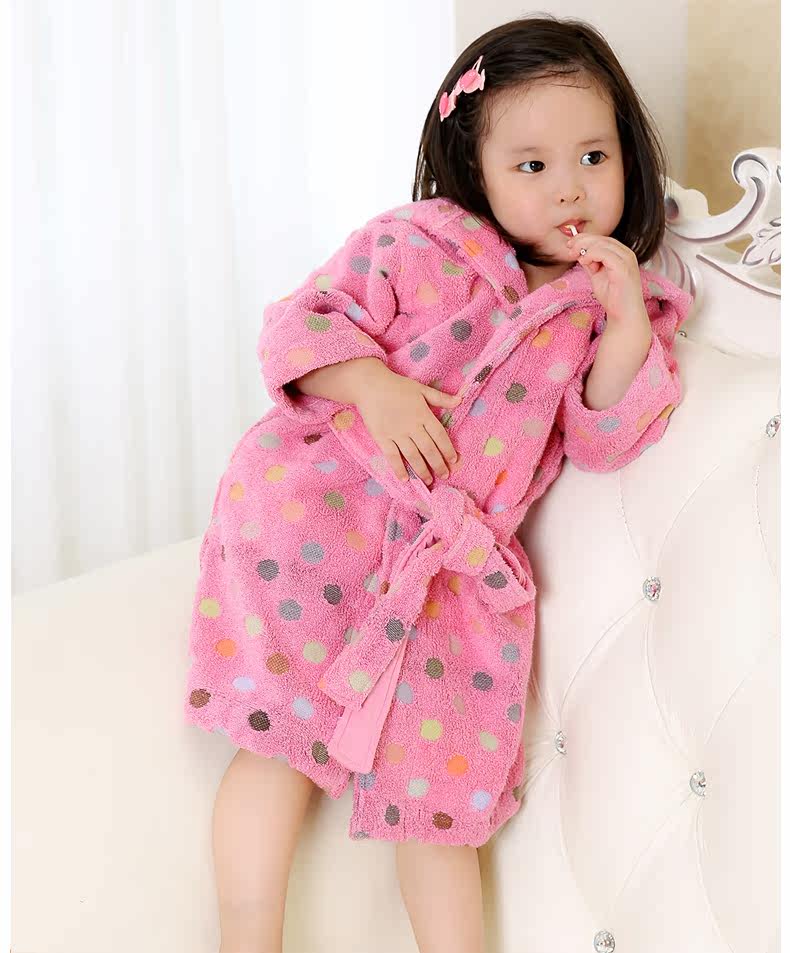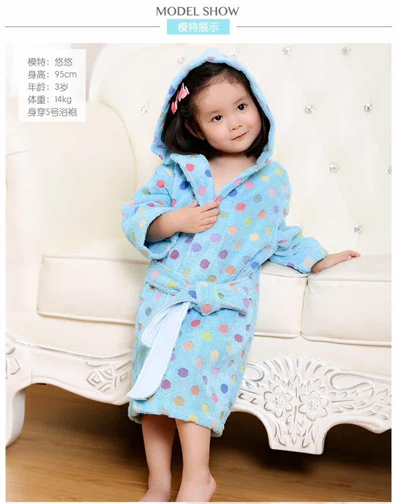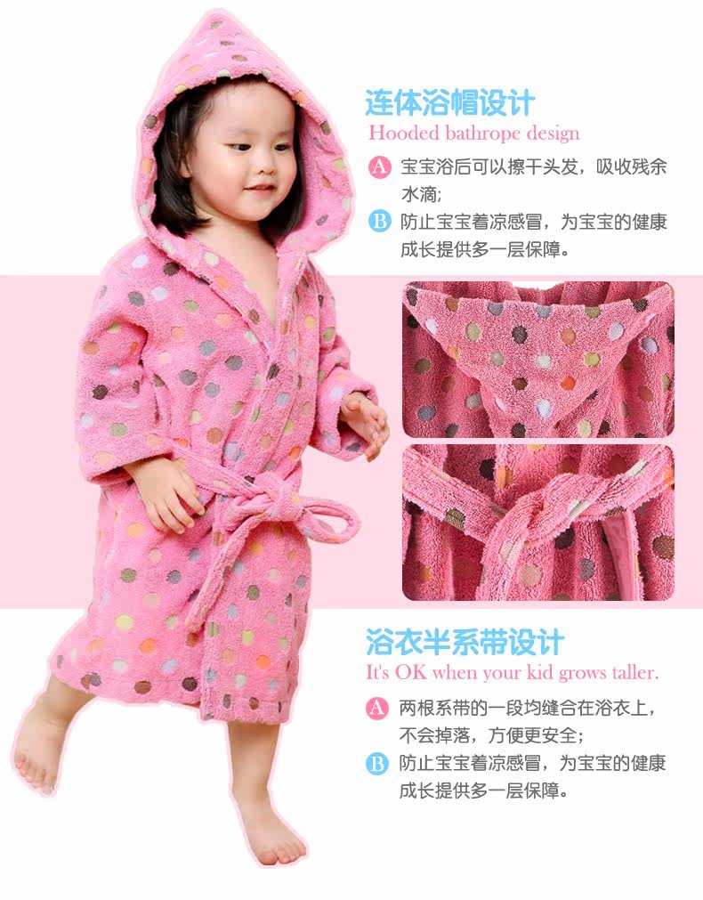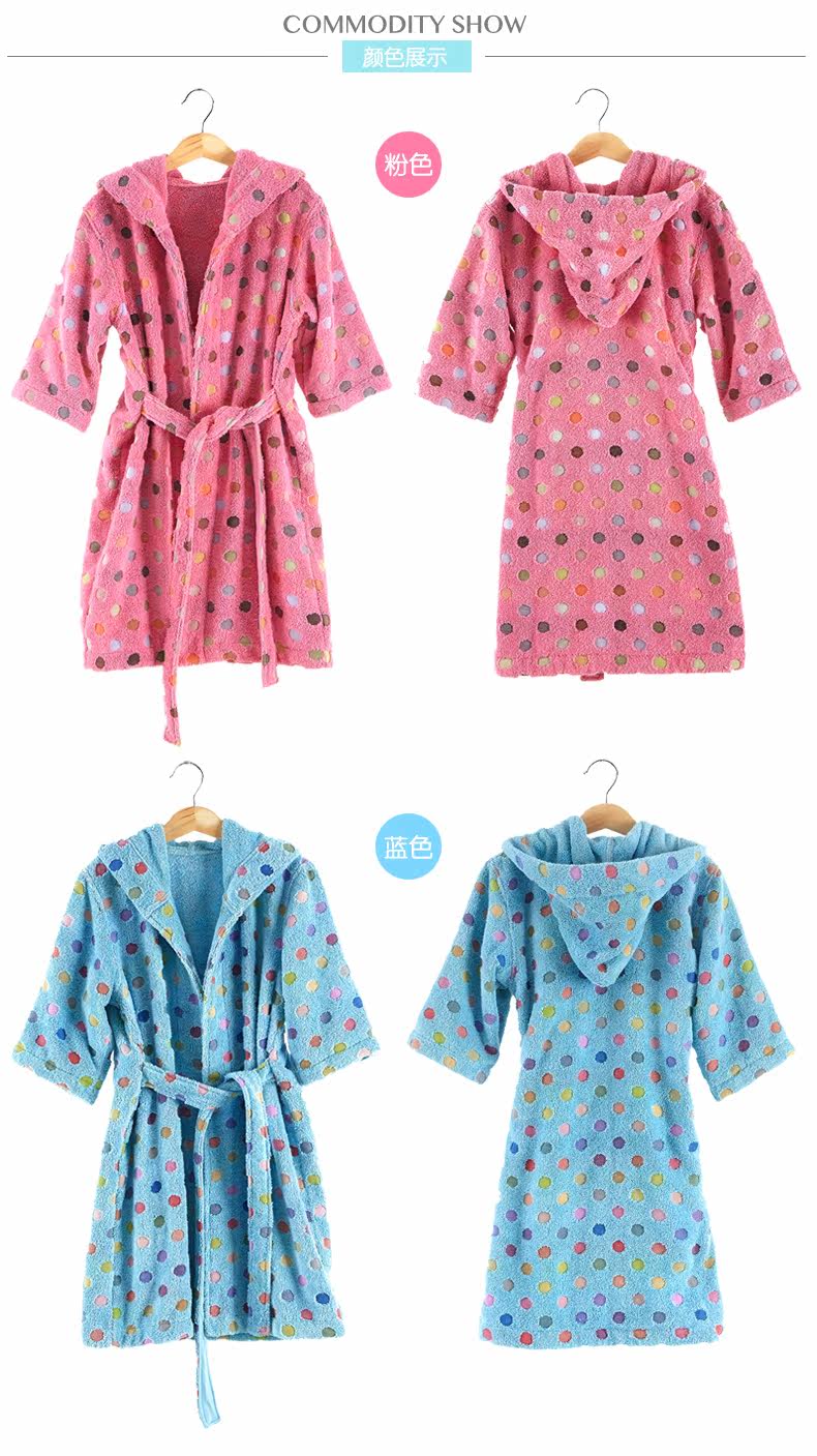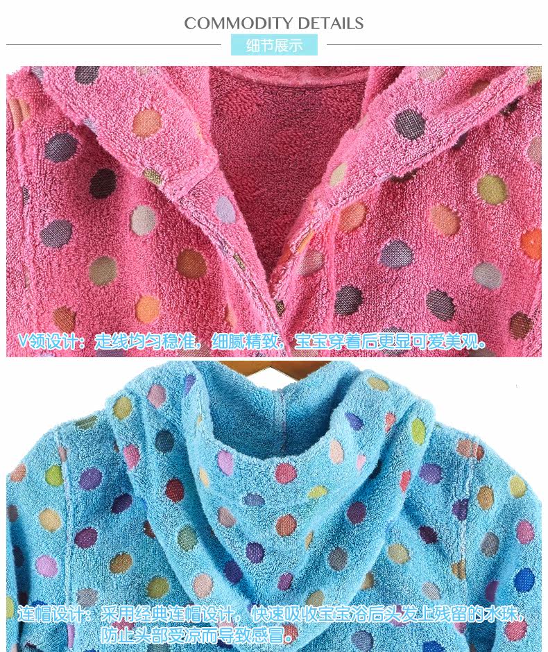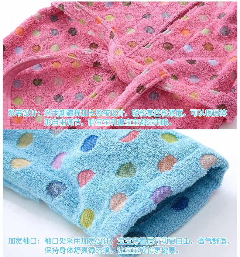 天貓購物商城Covator雋優純棉波爾卡圓點兒童浴袍毛巾布加厚波點冬季寶寶浴衣 - 521033993371