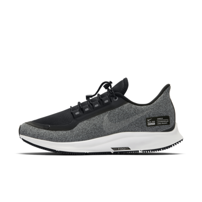 Nike Air Zoom Pegasus 35 Shield Water-Repellent 巧搭各種設計,有利征服潮濕路徑。抗水鞋面,搭配專為潮濕表面打造極致抓地機能的外底設計,讓你不畏惡劣天候,自信奔跑。