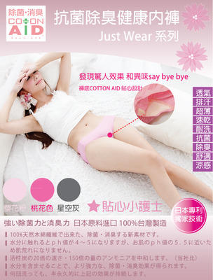 商品訊息功能: 女性私密保養 天然超強抗菌消臭彈性纖維棉 日本進口素材&MIT台灣製 消臭速度是活性碳20倍 PH值接近弱酸性親膚性佳