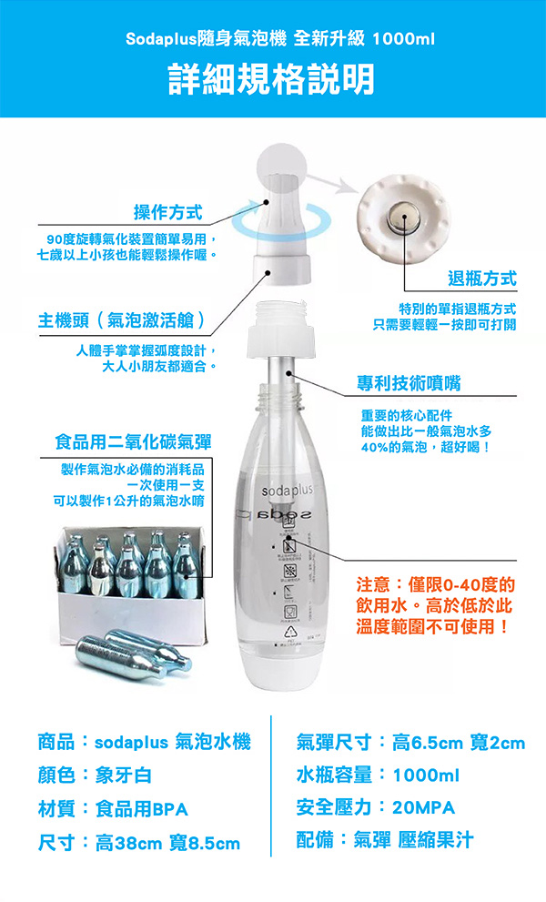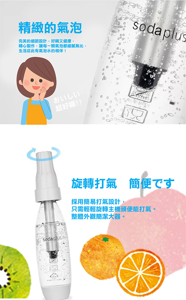 【SODAPLUS】隨身攜帶蘇打氣泡水瓶/氣泡水機(加贈氣彈10入) 的產品介紹在下面,