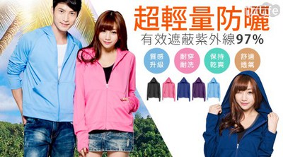 MIT強力抗UV,領先衣著時尚外套!連帽款男女皆適穿,遮蔽紫外線高達97%,五色靚彩任選,高機能舒適