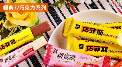 規格:60入/組(每組內含:77新貴派白巧克力(花生)x30入+77巧菲斯(牛奶)x30入)
