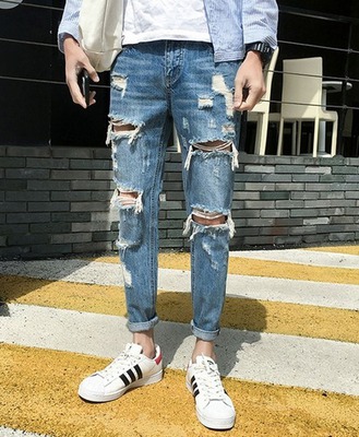 【折價限量折扣】韓系破壞修身九分牛仔褲 網路購物最新出版