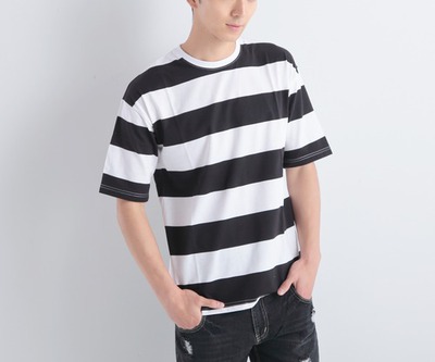 【熱銷產品】韓風休閒條紋落肩棉短T (黑色) 226 開箱文好康