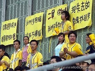 在一壘看台上,抗議的象迷也張貼20餘幅抗議標語,主要表達希望象隊籌組二軍、補強洋將、提升球賽品質,「要改革、勤補強、組二軍」、「真心辦二軍、再創總冠軍」、「把失去的象魂找回來」、「二軍,這象話嗎?」、「戰術要用腦,球迷不懊惱」、「用生命守護兄弟」…等標語不一而足。