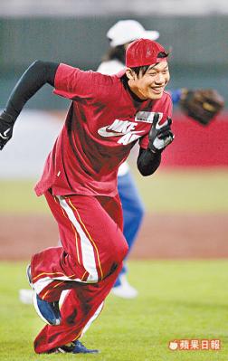 明年要跟他在日本樂天金鷹一起奮鬥的林英傑,則在活動快開始才趕到,衣服、鞋子才換好,身上穿著「禁欲中」內褲的他,就被叫上場參加跑壘比賽,還跑最後1棒,他說:「還沒熱身啊,萬一拉傷怎麼辦?」