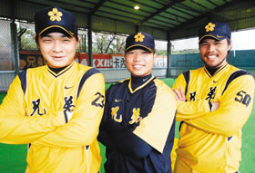 圖文/中華職棒兄弟象「新三劍客」,彭政閔(左起)、陳冠任及陳政遠歡喜迎接挑戰。