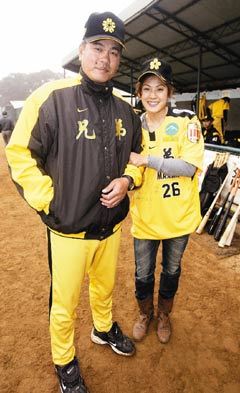 兄象隊「輝總」王光輝對著眼前特別的「粉絲」、中華女壘隊投手吳佳燕說:「妳們什麼時候集訓,我可餵球給你們打擊練習。」