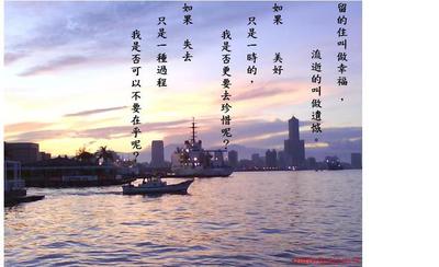 什麼都別想看著天空白雲並非一躲躲而是 漫無目地一片片朝著遠方漂去看著遠方坐在熟悉的位子享受著那不知從哪吹來的強風隨著風帶來的細小雨水輕輕的打在臉上有總被遺忘在世上的感覺享受著那無人打擾的時光真的有點孤...