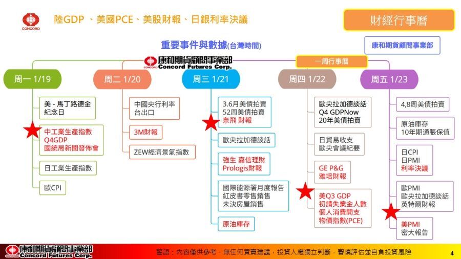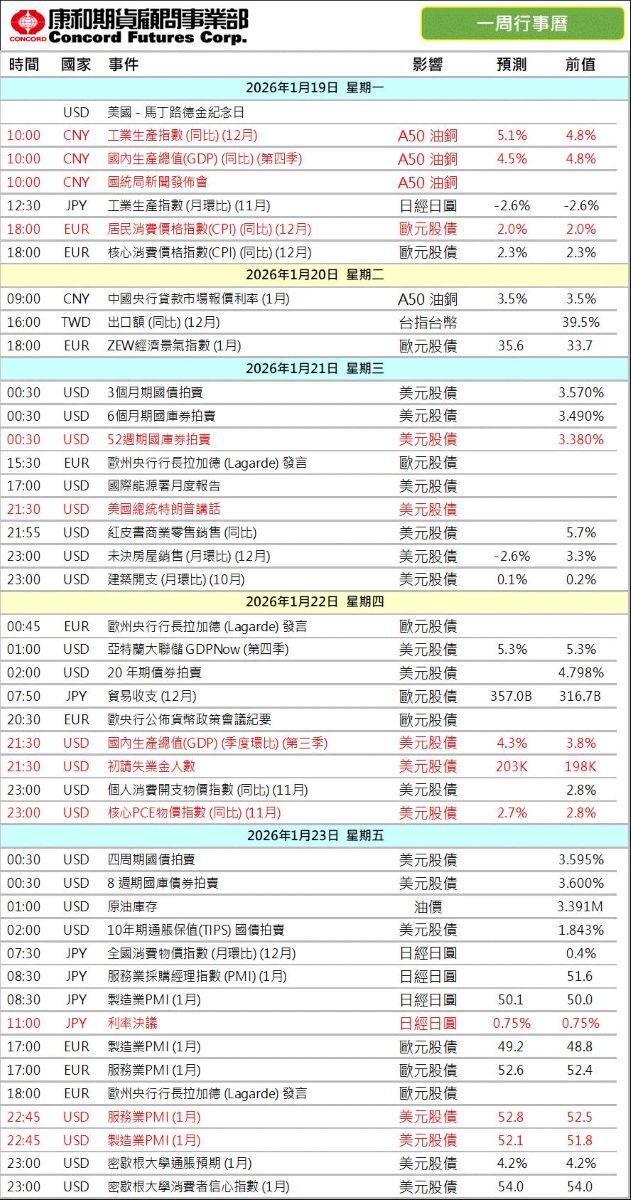 康和期貨重要數據行事曆20260119-20260123@康和期貨國內外期貨選擇權優惠徐雅如#外期海期期貨手續費