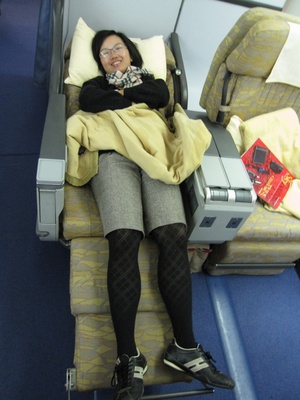 第一次坐頭等艙(用的是經濟艙的餐食),享受躺著睡覺的快樂、