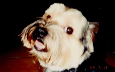 阿福來到我們家的時候,我十五歲,他是我升上高中的畢業禮物,在這之前,我不知道有多少次的苦苦哀求,爸媽總是用各式各樣的理由拒絕我。直到有一天,舅舅跟舅媽到家裡來接我說要帶我去兜風,沒想到車子就開到了信義路新生南路口以前國際學社附近,那裡有好幾家狗舍,舅舅請店老闆牽出了一隻黑不溜丟的小狗,跟我說是一隻約克夏喔,問我喜不喜歡,喜歡的話就帶回家。哇,what a surprise!我完全沒料到長久以來的願望,就在那天要實現,心裡暨興奮又緊張,牽著小狗的手不停的在發抖;而那隻狗一出狗籠就一溜煙的鑽到桌底下,原來桌底放了一整碗剛煮好的雞胸肉,我還記得我死拖活拖他就是不肯離開那碗香噴噴的雞肉,最後還是老闆把他硬抓出來才能了。