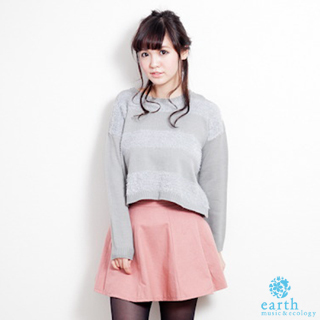 【earth music】蝙蝠袖短寬版條紋縷空針織上衣-淡混灰色(10137GE2050107106)