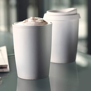 手感冷熱馬克杯是個藝術與工藝縝密配合的優質馬克杯。雙層的杯身形成中空的隔熱區,有著保溫防燙的功能,無論杯內是冰涼的果汁或是熱呼呼的茶都不會讓握住杯身的手覺得太冷或太燙。當盛裝冷飲時,更不會在杯外緣產生水珠而滴濕桌面。使用高品質的瓷土在攝氏 1320 的高溫下燒製,擁有絕佳的強度與表面品質。仿造紙杯的造型設計,耐高溫矽膠杯蓋,讓您的生活充滿創意與驚奇。