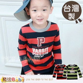 momo購物網[【魔法Baby】臺灣製造文字印條紋長袖圖T-綠.桔-男女童裝(k30129) ] 進入MOMO 購物網官網