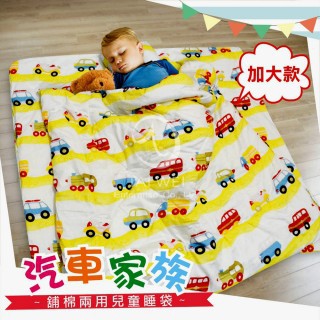 【汽車家族】純棉二用兒童睡袋(加大型) 採用100?棉製作。針對台灣海島型氣候季節的變化,推出符合四季使用的商品,同時,在花款的設計上,融入歡樂、可愛流行元素,以平實的價位提供消費者高品質的寢具選擇,讓您的寶貝能享受到舒適的寢具用品!清洗容易、收納方便,透氣舒適,提升睡眠品質。