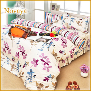 【Novaya-諾曼亞】《季嚮曲》絲光綿雙人孕韟▽Q棉兩用被床包組