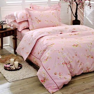 【La Belle】粉愛花語-雙人四件式舖棉兩用被床包組