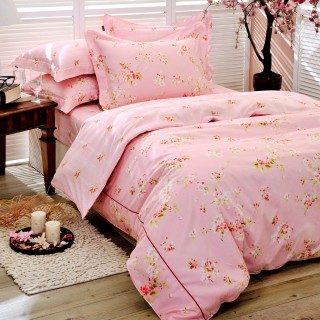 【La Belle】粉愛花語-特大四件式舖棉兩用被床包組
