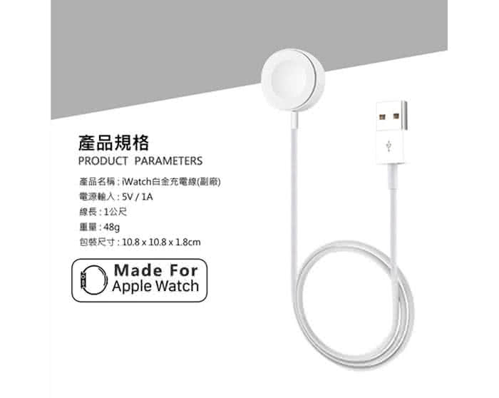 - 內容物:蘋果手錶Apple iWatch白金版通用充電線(副廠)*1