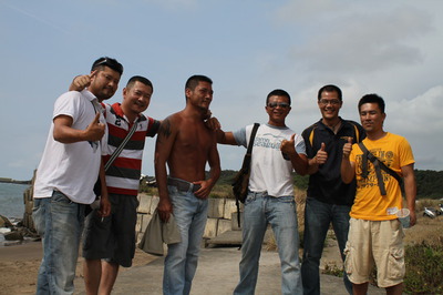 左右兩端是Mixi上的朋友,ファン太ノ助 (Fan太之助)和他的夥伴。第一次來台灣, 就被我們帶到洲子灣。照片上的六人合照, 非常難能可貴, 也有可能是絕響, 因為下次再來, 也不知道是何年何月的事了...