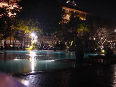 就這樣, 我們白天搭了一次船出去冒險, 晚間又搭了一次。夜晚的風貌更是迷人呢, 光影變化加上星星堆滿天, 格外有南洋風情。 有些老外吃完晚飯仍然到泳池邊去納涼, 因此服務人員仍在附近忙進忙出的,...