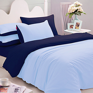 【英國Abelia】《繽紛混搭》雙人四件式天使絨被套床包組-水藍*深藍