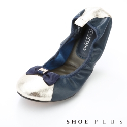 Cocorose 經典金扣 真皮摺疊娃娃鞋 深藍拼接金色