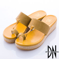 DN 舒適耐走-MIT麻繩編織厚底夾腳拖鞋_黃 DN帶來夏季最流行的麻繩編織厚底台 搭配鮮豔色系,輕鬆成為眾所矚目焦點 以細緻柔軟的牛皮,強烈對比底台的粗糙感 前高後高外加編織楔型厚底設計 輕鬆行走同時又能拉提整體比例 不論搭配長裙穿出浪漫波希米亞風 或是換上短褲展現個性休閒STYLE 都能擁有九頭身的黃金比例