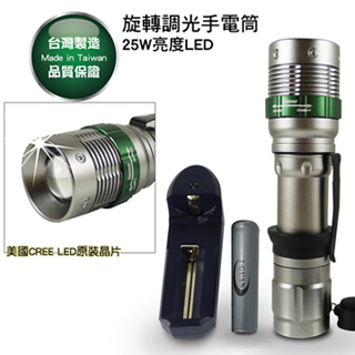 【晶冠】25W亮度LED旋轉調光手電筒+充電組JG-25WA3