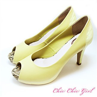 【CHIC CHIC GIRL】全真皮系列~時尚名媛撞色魚口高跟鞋*黃