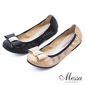 【Messa米莎】(MIT)金蔥蝴蝶結內真皮平底包鞋-兩色