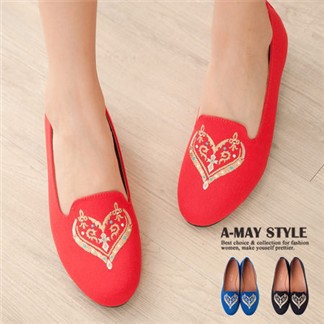 (艾美時尚)MIT愛心刺繡圖騰樂福鞋-3色