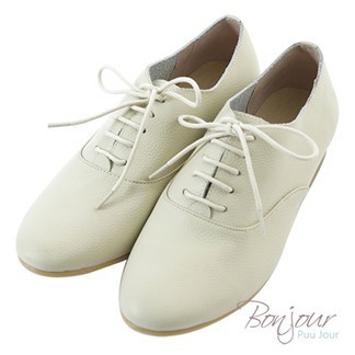 (BONJOUR)百搭不NG牛津鞋☆低跟柔軟全真皮平底鞋(35-42大尺碼)-杏