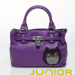 JUNIOR - 經典時尚再現亮鑽貓頭鷹鎖頭小凱莉包-魅力紫