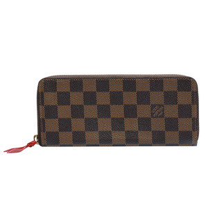 LV N60534 CLEMENCE系列經典Damier棋盤格拉鍊長夾(櫻桃紅)