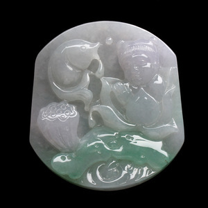 【雅紅珠寶】 和氣生財天然冰種春帶彩翡翠項鍊-玉女,魚,蓮藕