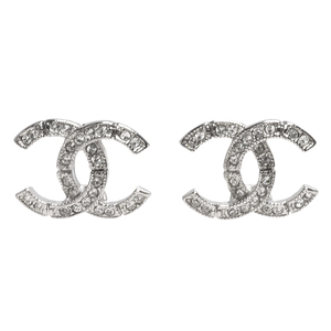 CHANEL 香奈兒經典雙C LOGO水鑽鑲嵌接縫造型穿式耳環(銀)95577-ARG