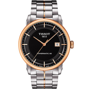 TISSOT T-Classic Luxury 機械腕錶-黑x玫塊金框 41mm T0864072205100