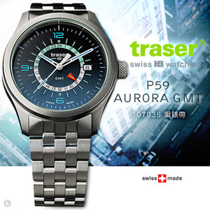 Traser P59 Aurora 極光GMT 深藍錶款(鋼錶帶) #107036