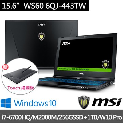 【上班族省錢大作戰】【MSI微星】WS60-443 15吋工程繪圖筆電(i7-6700HQ-16G-256GSSD+1TB-M2000M-4G)+【Wacom】Touch 繪圖板(S)