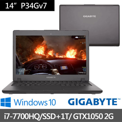 【2017流行產品】【GIGABYTE 技嘉】P34Gv7 14吋 1050獨顯輕薄電競筆電(i7-7700HQ-8G-128G+1T-GTX1050-2G-WIN10)